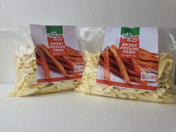 Ghana Sweet Potatoes (Atomo) conveniently packaged into ready to fry/bake, unsalted, french-fries-sized cuts. Store frozen; add your seasoning and enjoy a sumptuous meal. Choose this healthier alternative to to chips.