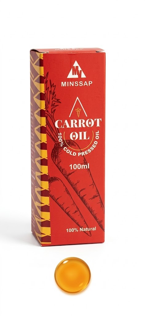 Our Minssap Carrot Oil is rich in vitamins and antioxidants, making it a powerful addition to your skincare routine. It helps to rejuvenate and moisturize the skin, leaving it soft, smooth, and radiant. The high levels of beta-carotene in carrot oil also contribute to a healthy glow, promoting a youthful complexion.