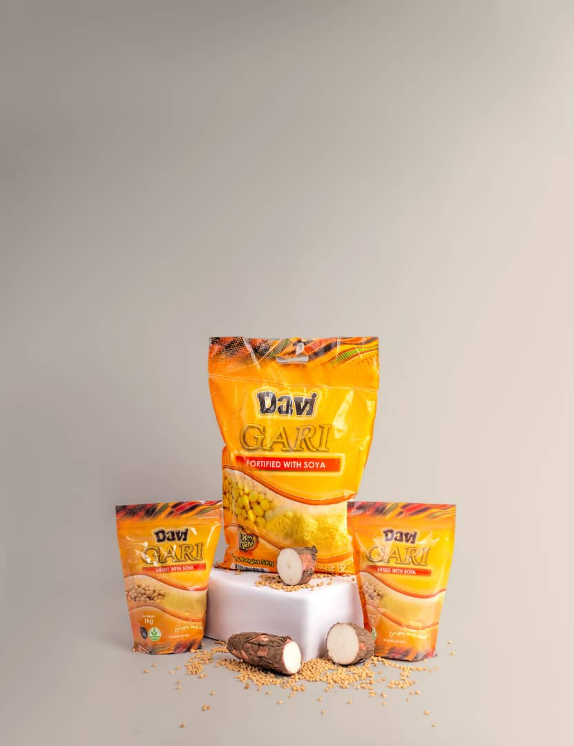 Davi gari is rich in insoluble fibre that makes it easily digestible and prevents constipation. Davi gari is gluten free, it gives you the right amount of carbohydrate and energy that your body requires on a daily basis. Davi gari is crispy, delicious and it Africa’s finest blend of soy and cassava.