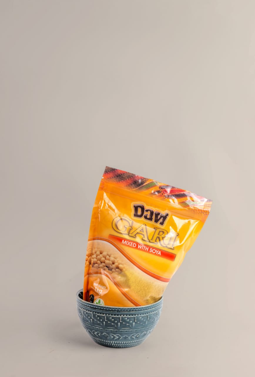 Davi gari is rich in insoluble fibre that makes it easily digestible and prevents constipation. Davi gari is gluten free, it gives you the right amount of carbohydrate and energy that your body requires on a daily basis. Davi gari is crispy, delicious and it Africa’s finest blend of soy and cassava.