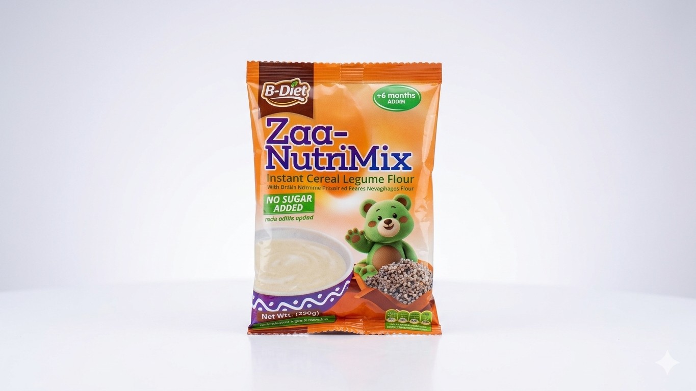 Elevate your family’s daily nutrition with B-Diet Zaa Nutrimix. This premium, ready-to-cook instant cereal and legume mix is meticulously crafted to deliver complete nourishment in every bowl. Blending indigenous, nutrient-dense ingredients like orange-fleshed sweet potato, sorghum, and green gram (mung bean), it offers a rich source of vitamins and plant-based protein for both growing children and health-conscious adults.